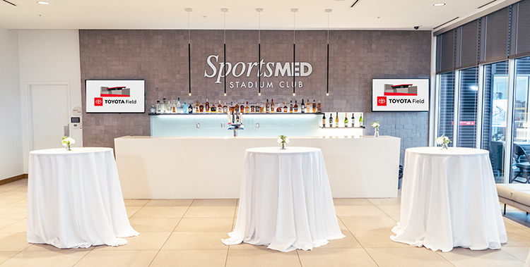 The climate controlled SportsMed Stadium Club, situated on the first base side of the stadium, measures over 5,000 square feet and includes a full-service bar and an outdoor deck. It has enough space to fit up to 400 people.