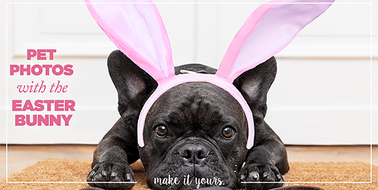 On Mondays, March 28 and April 4, you can have pictures taken with the bunny and your pets from 4 p.m. until 7 p.m.