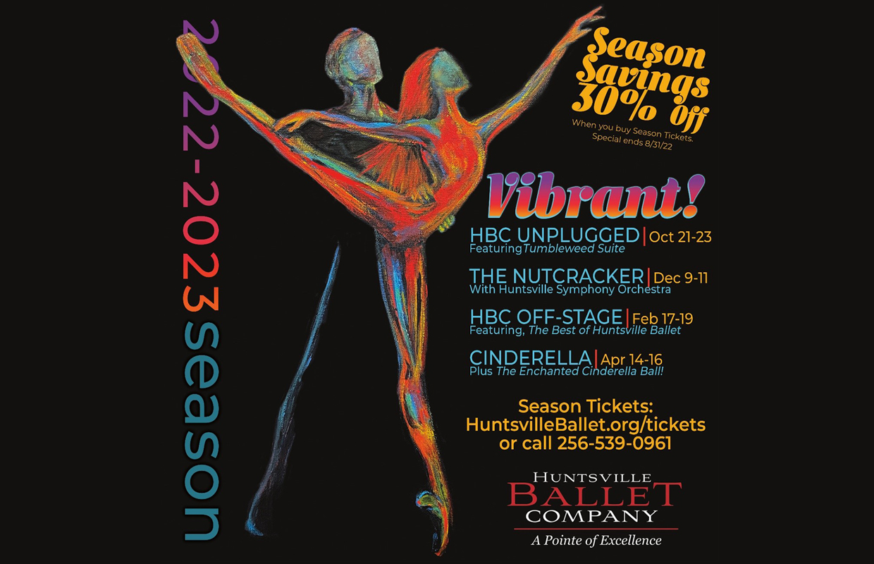 To celebrate the return to a full season schedule, Huntsville Ballet is offering 30% discount subscription prices to those who register online by clicking here, before Aug. 31.