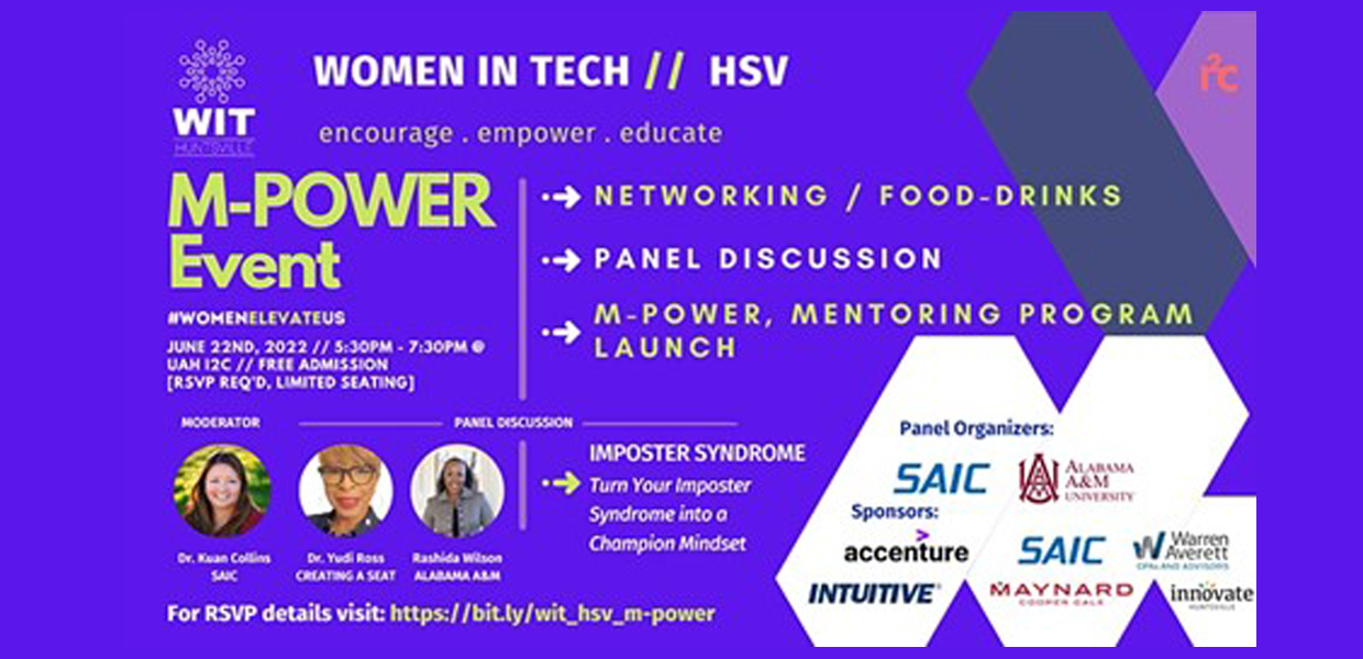 Mentorship is the focus of Women in Technology Huntsville’s M-Power mentoring program launch June 22. It will be 5:30-7:30 p.m. at the University of Alabama at Huntsville’s Invention to Innovation Center.