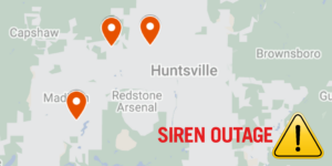 HUNTSVILLE — With a threat of severe weather in today’s forecast, the Huntsville-Madison County EMA has three outdoor warning sirens that are not working, the agency announced.