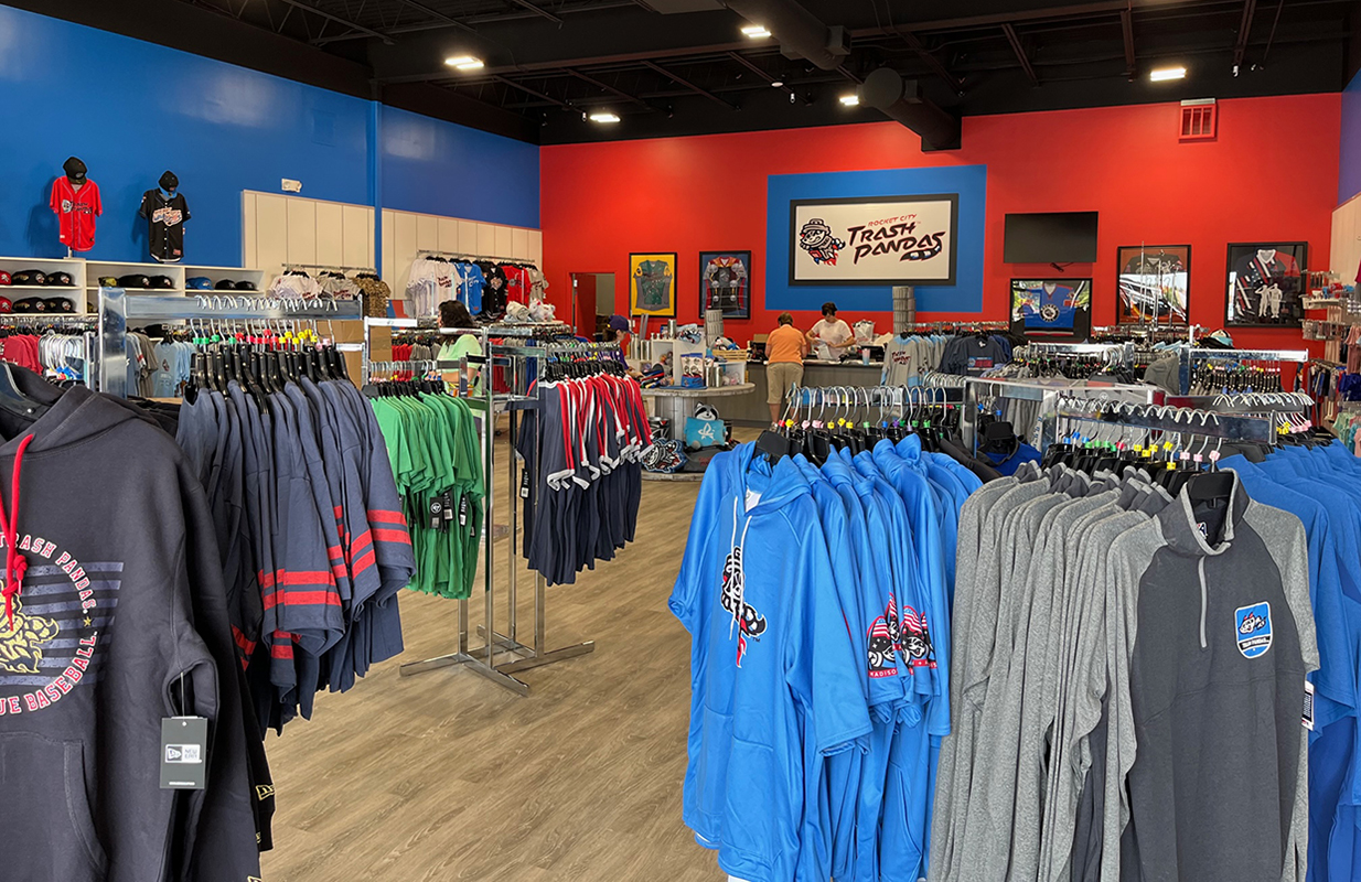 This time the Trash Pandas are pitching a no-hitter with plenty of room for displaying more apparel such as caps, jerseys and t-shirts, Polos, sweatshirts, hoodies and more.