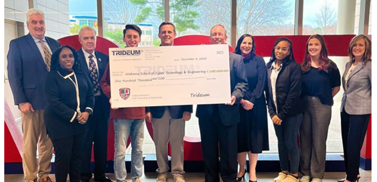HUNTSVILLE – In following its tradition of supporting academic institutions that focus on engineering, cyber or technology, Trideum recently presented a check to the Alabama School of Cyber Technology and Engineering for $100,000.