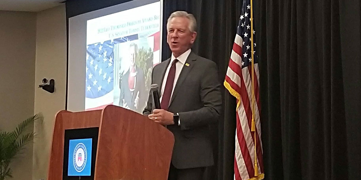 At the “Freedom Celebration: Restoring the American Dream” event, Tuberville was awarded the “Leo K. Thorsness Award.” Colonel Thorsness was a retired Air Force pilot, a former prisoner of war in the Vietnam War and Medal of honor recipient. Upon receiving the award, Tuberville remembered his father, a World War II veteran and Purple Heart recipient, “Part of truly the greatest generation.” He added winning this award was an honor, saying, “This is my job, to pay my dues to the greatest country on the face of the earth, the United States of America.”