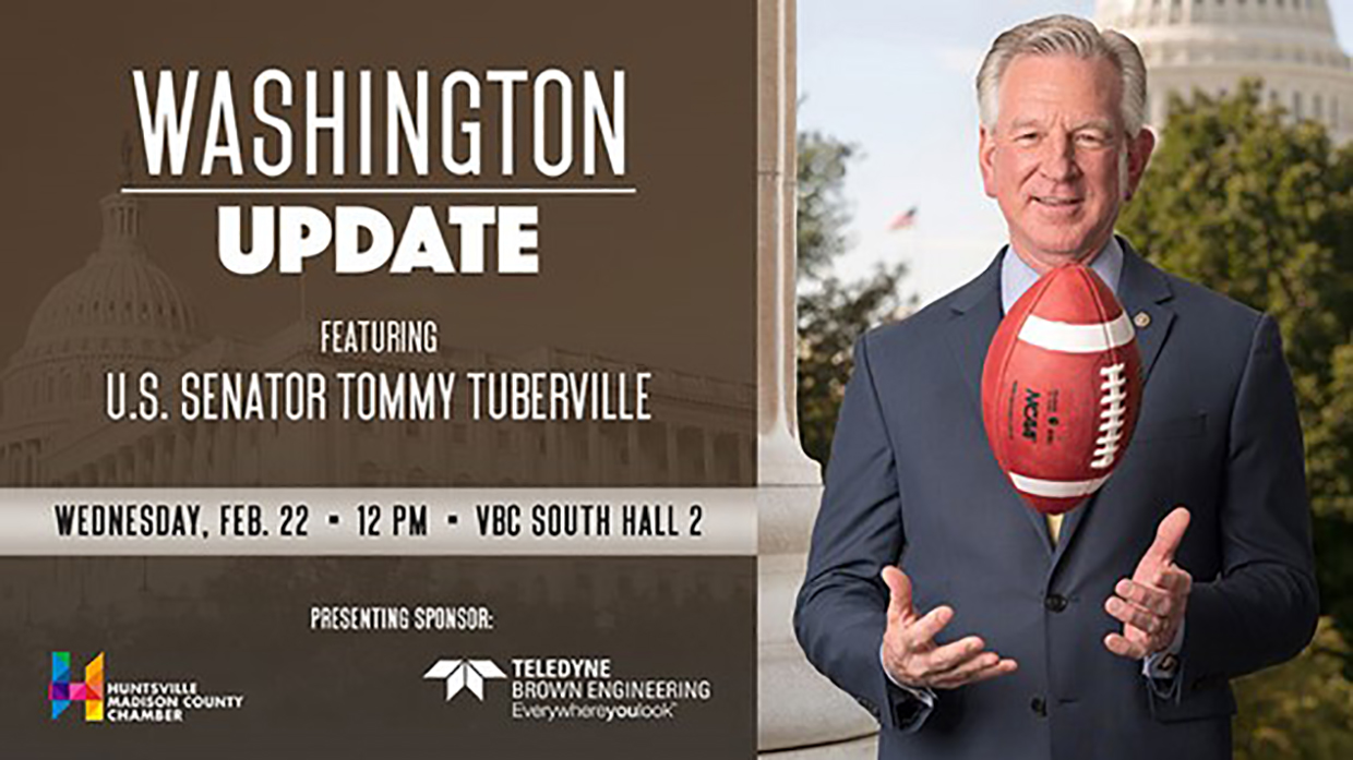 HUNTSVILLE — U.S. Tommy Tuberville will headline the annual Washington Update Luncheon next month hosted by the Huntsville/Madison County Chamber. The event is noon Feb. 22 in the Von Braun Center.