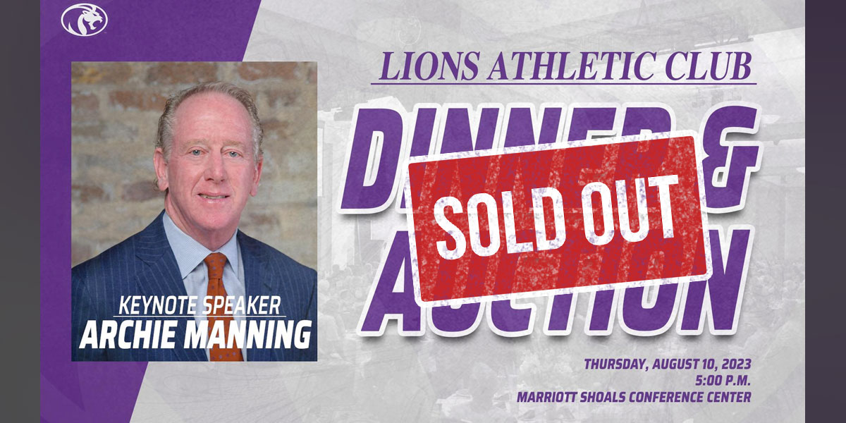 “This event will be a new pinnacle for the UNA Lions Athletic Club as we are bringing an internationally known and respected individual as our keynote speaker in Hall of Fame football player Archie Manning,” said Lions Athletic Club President Johnny Simpson. “We have achieved great success and community participation in the past few years with both Pete Rose and Bill Walton as our featured speakers.