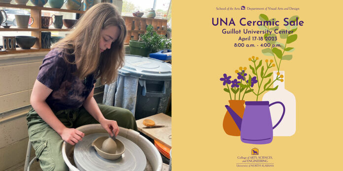 “I’ve found that the sale is a good way to introduce people to UNA’s art program,” said Grace Macey, one of the shop technicians who is creating pieces for the sale. “We love to interact with new people and help them appreciate the arts.